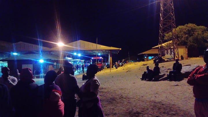 Ao descer do automóvel, deparo-me com casebres em tons fúnebres e filas gigantescas que intimidariam até os viajantes mais experientes. O único som que rompe o silêncio é o caos do comércio na escuridão.